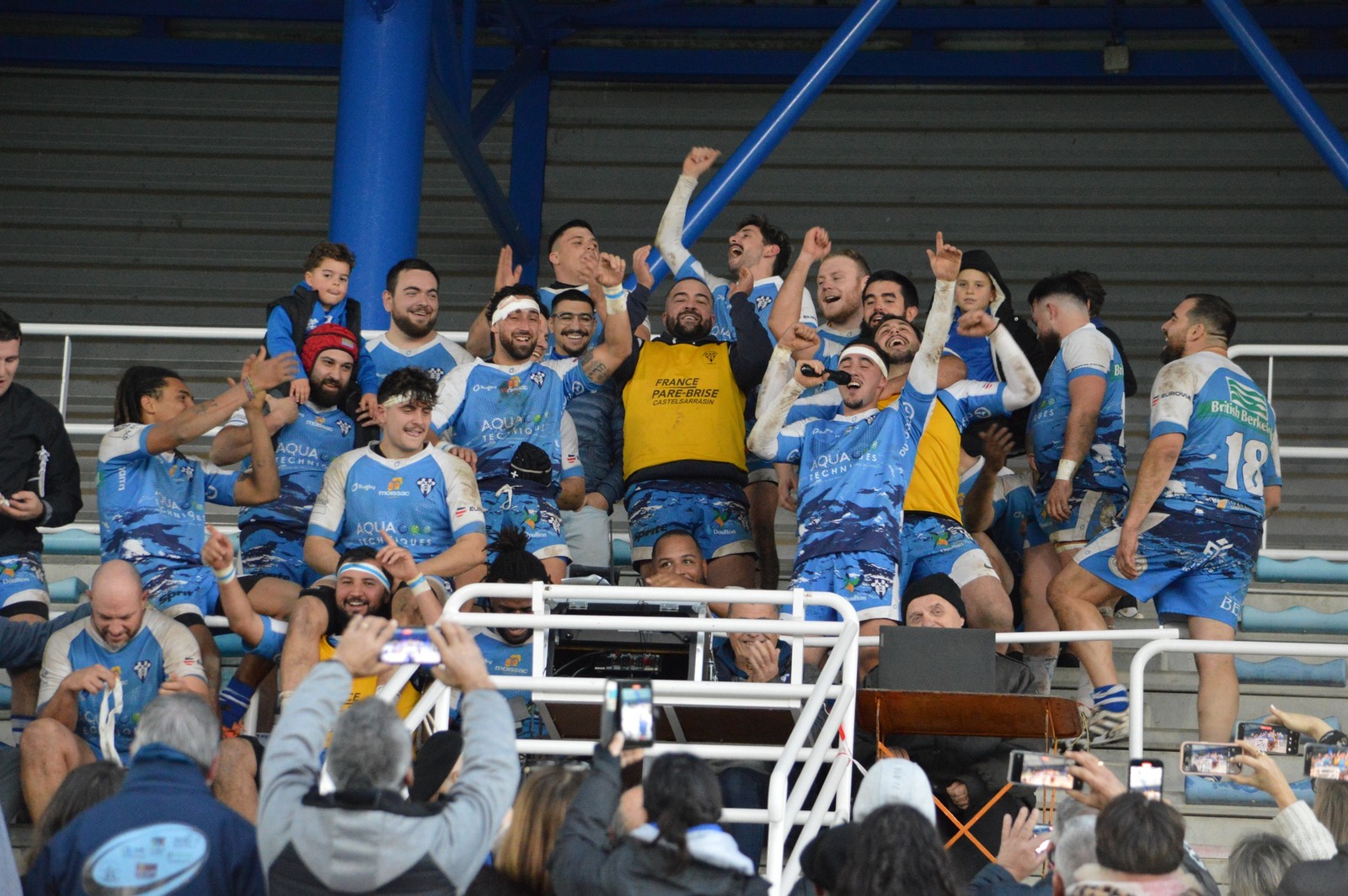 La victoire de l’équipe première, après un match à suspens fut célébrée de manière fort originale puisqu’à la grande surprise de tous, les joueurs moissagais sont montés dans les tribunes pour entamer un hymne composé par le groupe et son chanteur « Enzo » qui espérons-le, retentira souvent dans les travées du stade, synonyme de victoire…