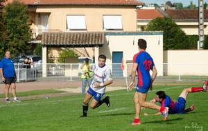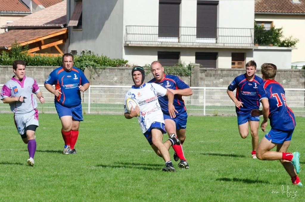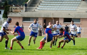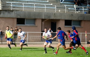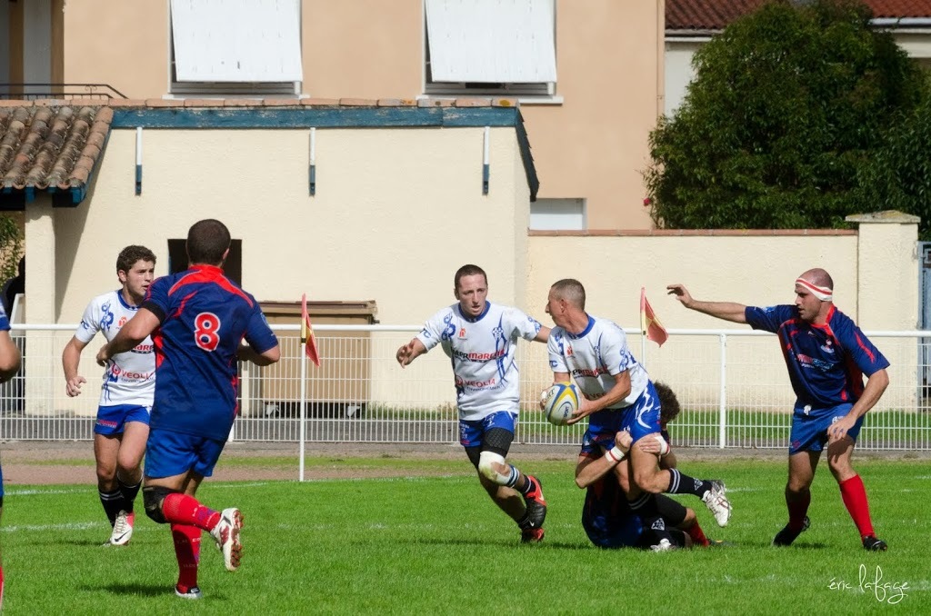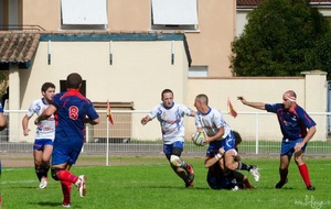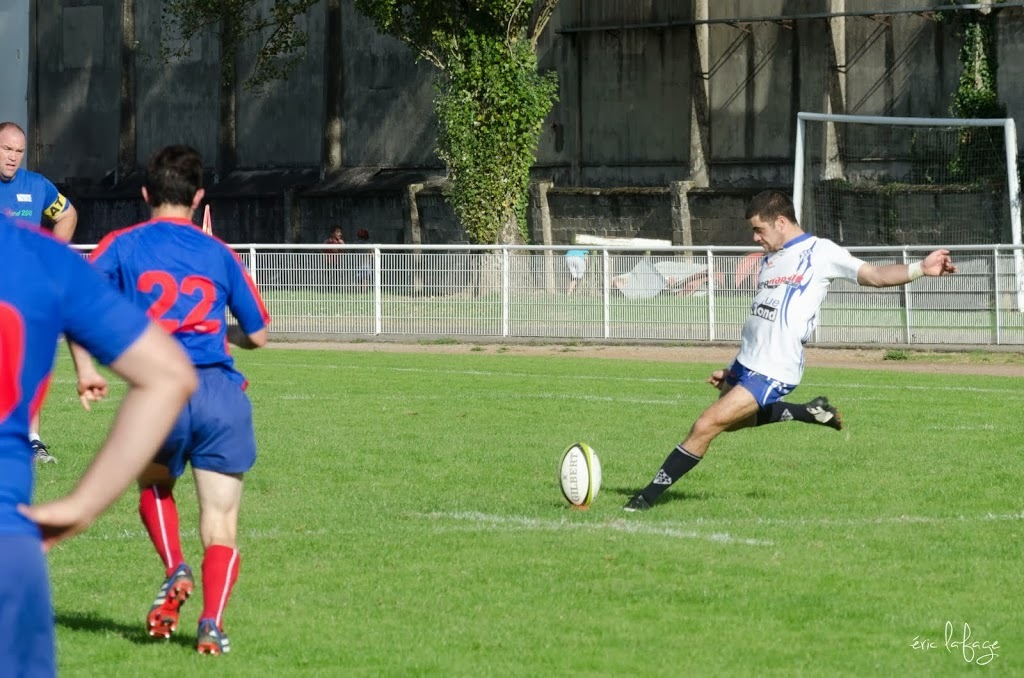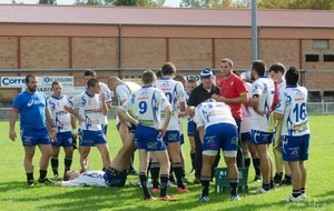 Pour notre équipe, il fallait confirmer la victoire de dimanche dernier à l’extérieur. Tout ne fût pas facile. Réduits à 14 dès la 10ème minute, (pour un carton rouge à un des nôtres suite à une bagarre, Leguevin ne prenait qu’un jaune en ayant pourtant commencé les provocations) nos joueurs vont pourtant faire un gros match, faisant cavalier seul pratiquement toute la partie, marquant 4 essais pour mener 36 à 15 jusqu’à la 76 ème minute. Mais malheureusement, suite à un nouveau carton (blanc celui-ci) nos bleus et blancs vont encaisser 2 essais dans les toutes dernières minutes et laisser échapper le bonus offensif offrant par la même occasion le bonus défensif à nos visiteurs. Mais tant pis pour le bonus, la victoire est belle, n’en déplaise au correspondant de la presse, qui n’a retenu que les soi disant largesses et oublis de nos adversaires et n’a pas vu la formidable volonté de nos joueurs pendant 75 minutes, en jouant tout de même pas loin de 30 à 13. Alors savourons, rien n’est fait mais toutes les victoires sont bonnes à prendre.