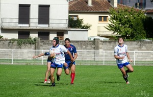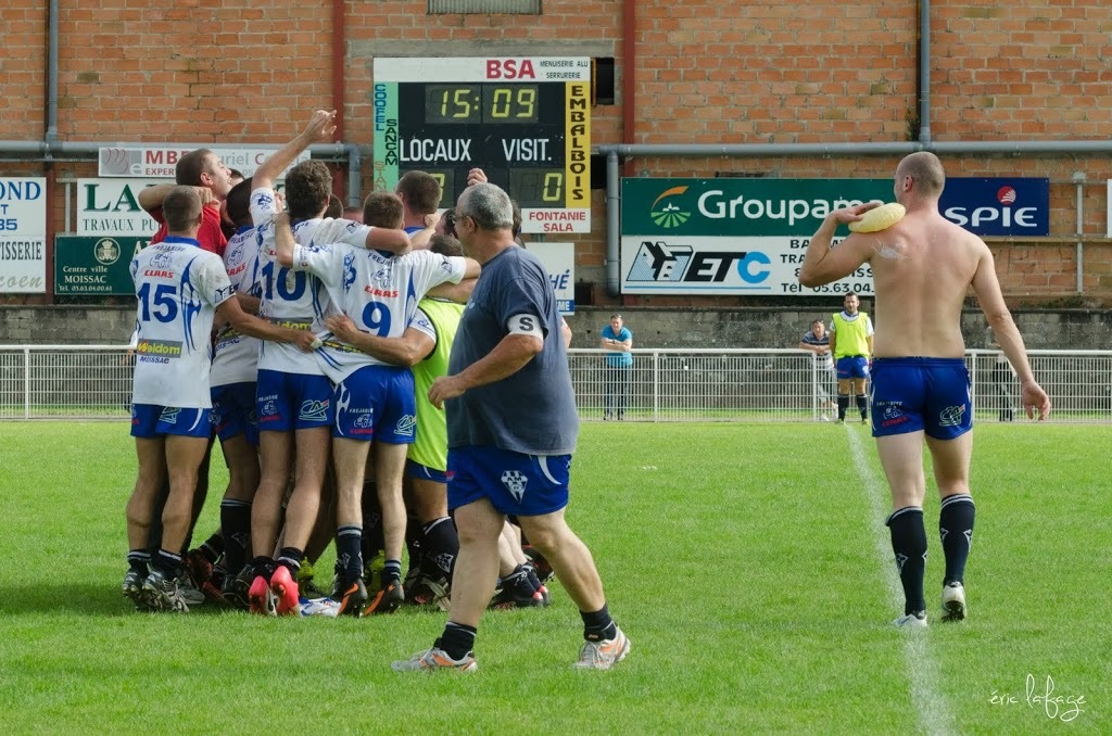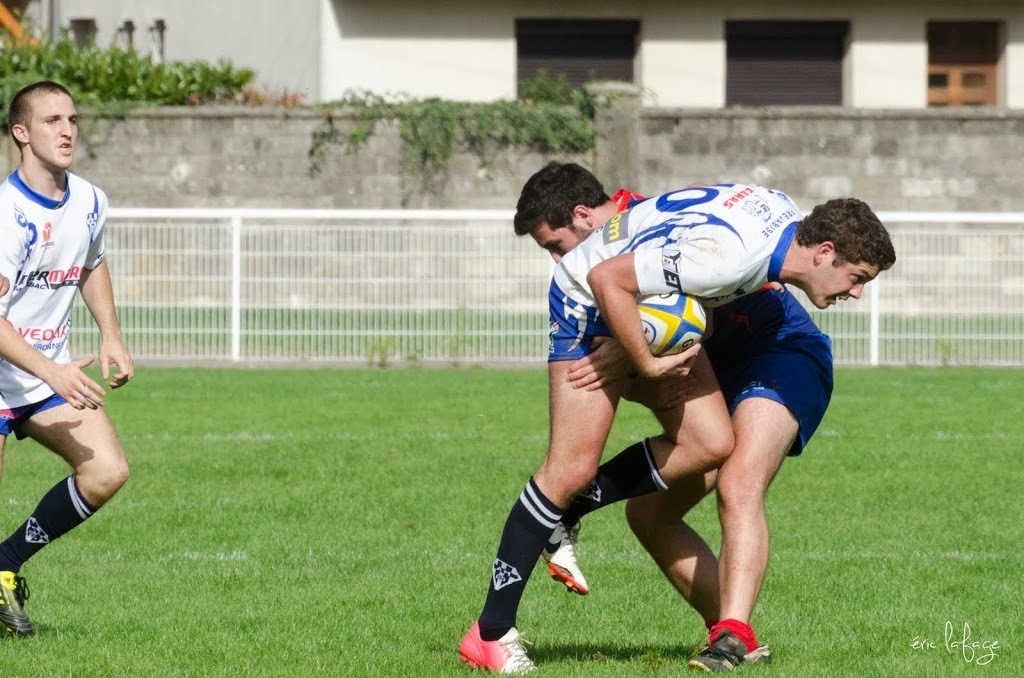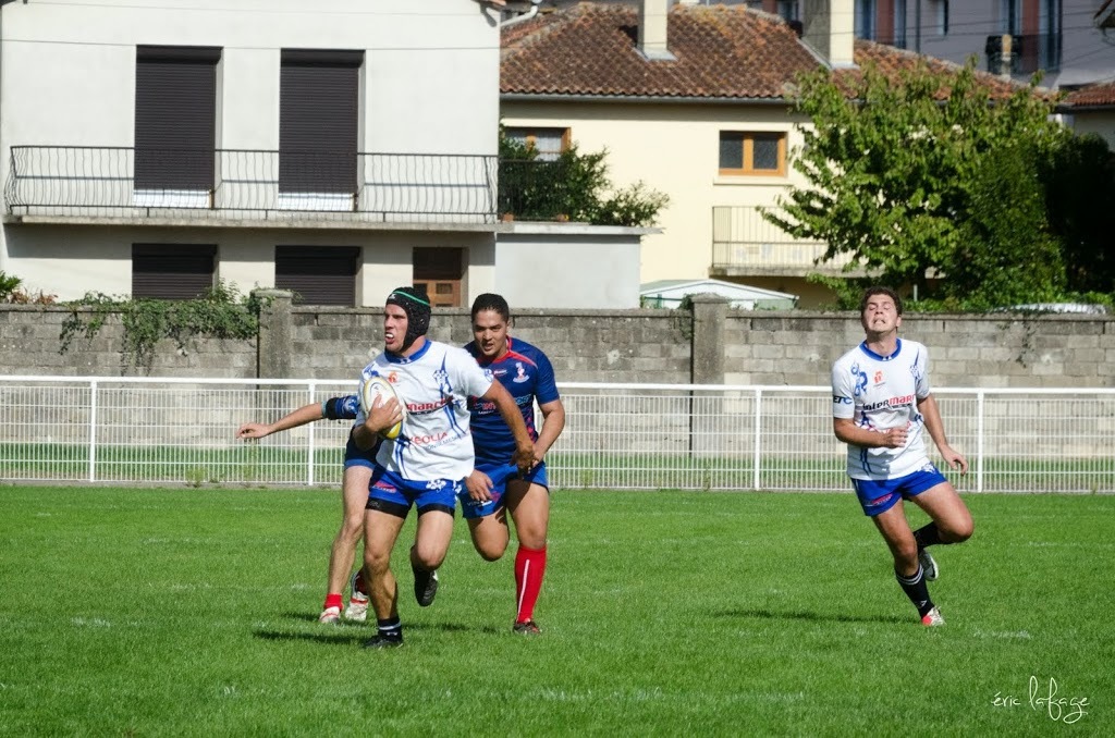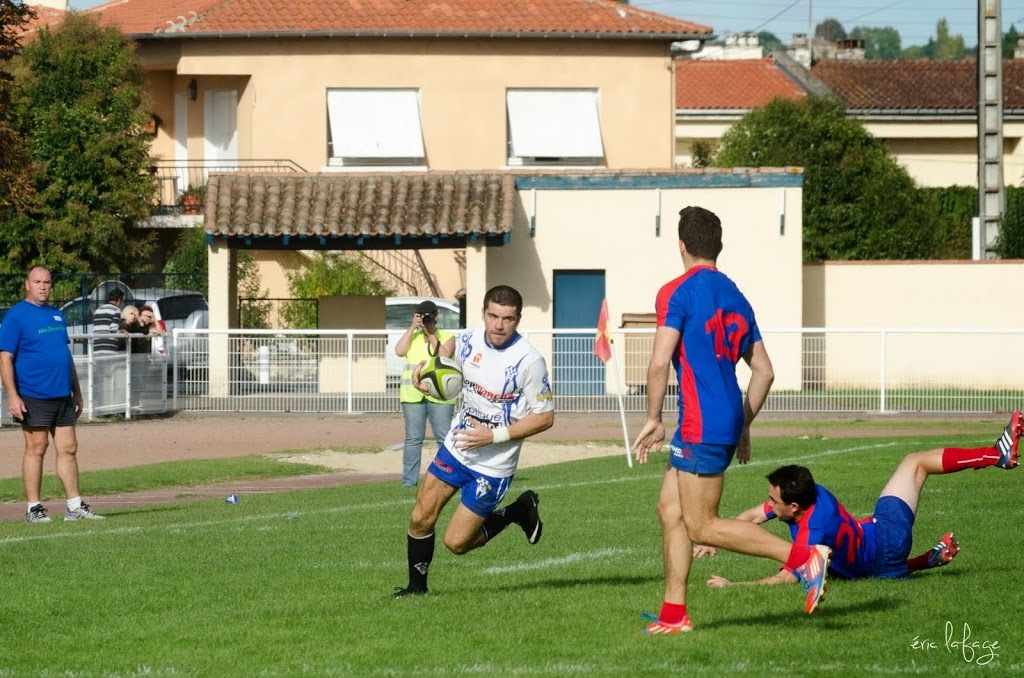 Nos équipes seniors avaient besoin ce week end de se rassurer pour notre B et de confirmer pour notre 1ère. Pour la B il fallait faire oublier le faux pas du week end dernier et l’emporter pour rester dans le haut du tableau. Mais voilà, c’est le leader invaincu qui se présentait au stade « Jo Carabignac ». Après un début de rencontre assez équilibré où Leguevin prendra tout de même l’avantage, nos joueurs vont repasser devant creusant même l’écart en seconde mi-temps pour ne plus quitter la tête, Leguevin reviendra dans les dernières minutes mais s’inclinera tout de même 20-15. Très bon match de nos jeunes réservistes face à une équipe solide et bien en place. Ils prennent la première place à égalité avec l’adversaire du jour après 5 journées.