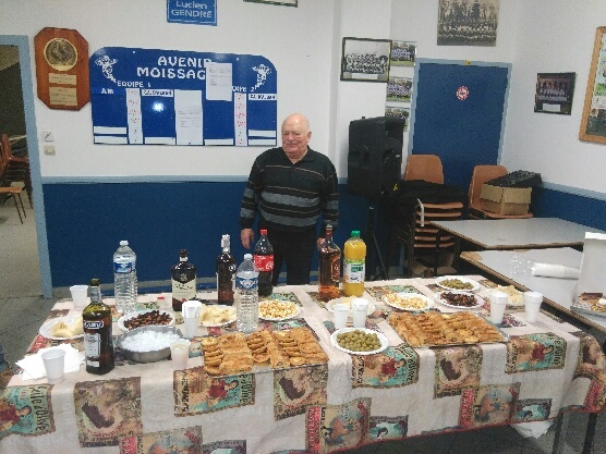 Après l'entraînement de vendredi, les dirigeants et les joueurs se sont réunis autour d'un belle petite réception organisée par le plus âgé de nos dirigeants pour son anniversaire. Pierre avait mis les petits plats dans les grands à cette occasion et il ne manquait rien sur le buffet. Et comme si cela ne suffisait pas, il offrait par la même occasion le dessert (très apprécié de tous) à l'issue du repas. Un grand merci donc à Pierre pour ses 85 ans.