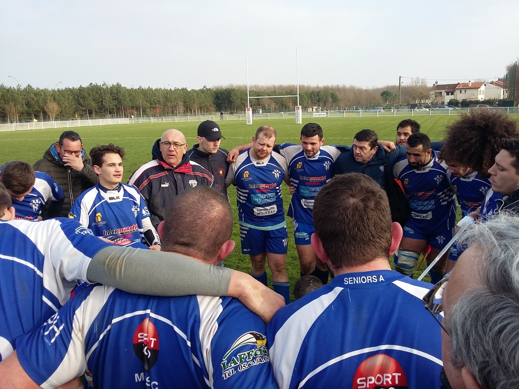 AM qui pleure...AM qui rit !!! dans la fraîcheur toulousaine en ce dimanche après midi les quelques supporters moissagais présents au TUC sont repartis grands sourires aux lèvres. Malgré la défaite de l'équipe réserve sur le score de 43 à 15 nous retiendrons la performance des joueurs bleus et blancs qui ont tenu plus de 35 minutes en seconde période face à leur adversaire sans encaisser de points.malgré le vent contraire. Dans le dernier quart d'heure, ils encaisseront 2 essais qui leur seront fatal. Le rendez-vous du jour tant attendu a tenu ses promesses entre deux équipes bien décidées à ne pas perdre. Le TUC prend le coup d'envoi et décide de jouer avec le vent. Ce sont les toulousains qui auront la possibilité d'ouvrir le score sur pénalité à la 3 ème minute mais leur buteur manquera les perches. 4 minutes plus tard c'est une opportunité offerte à Mathias Gros qui aurait pu ouvrir la marque en faveur des moissagais...las... la balle passe à côté des poteaux. Il faudra attendre la 16 ème minute pour voir les joueurs du TUC transformer une pénalité grâce leur buteur. Les joueurs de l'AM sont dominateurs sur les phases de jeu et de conquête, il y a la place pour faire " un coup" , cependant les blessures s’enchaînent , surtout côté visiteurs, preuve de l'engagement des équipes qui ne lâchent rien. A la 24' le jeune Raphaël Rioualen est remplacé par Lucas Chazelas, mais cela n'entame en rien la volonté des moissagais d'aller de l'avant et de marquer les premiers points qui se font attendre. Une succession de fautes de part et d'autres donneront la chance aux buteurs de scorer, mais c'est sans compter sur ce vent capricieux. Le score à la mi-temps est de 3 à 0 pour le TUC et le staff et les supporters moissagais commencent à regretter une nouvelle fois l'absence de concrétisation de leurs joueurs. Leur patience sera toutefois récompensée à la 56 ème minute grâce à la pénalité réussie de Mathias Gros. Sur la même action , Romain Reche se blesse à la cheville et doit sortir du terrain. La pression des avants bleus et blancs et les enchaînements volontaires des lignes arrières finissent enfin à porter leurs fruits à la 67 ème minute et offre une nouvelle fois l'occasion à Mathias G-f de passer les 3 points qui permettent à l'AM de prendre le score (6-3) La fin de la rencontre est insoutenable pour le public, la marque pouvant basculer d'un côté ou de l'autre à tout moment. Les locaux se lancent dans la bataille jusqu'au coup de sifflet final mais les joueurs de Moissac montreront qu'avec du cœur et de l'envie cette équipe mérite mieux que le classement qui est le sien. Ouf de soulagement pour les joueurs, entraîneurs et dirigeants présents. Les résultats des autres possibles relégables de la poule seront scrutés avec beaucoup d'attention mais du côté de l'Avenir Moissagais l'on commence à respirer un peu mieux. Ces 3 semaines de repos feront du bien , à la fois pour les organismes et pour le moral, en attendant la réception de la Saudrune le 18 mars à Carabignac